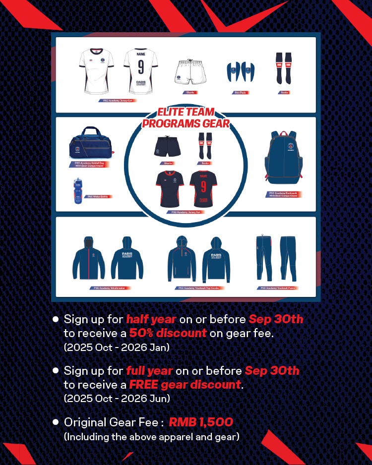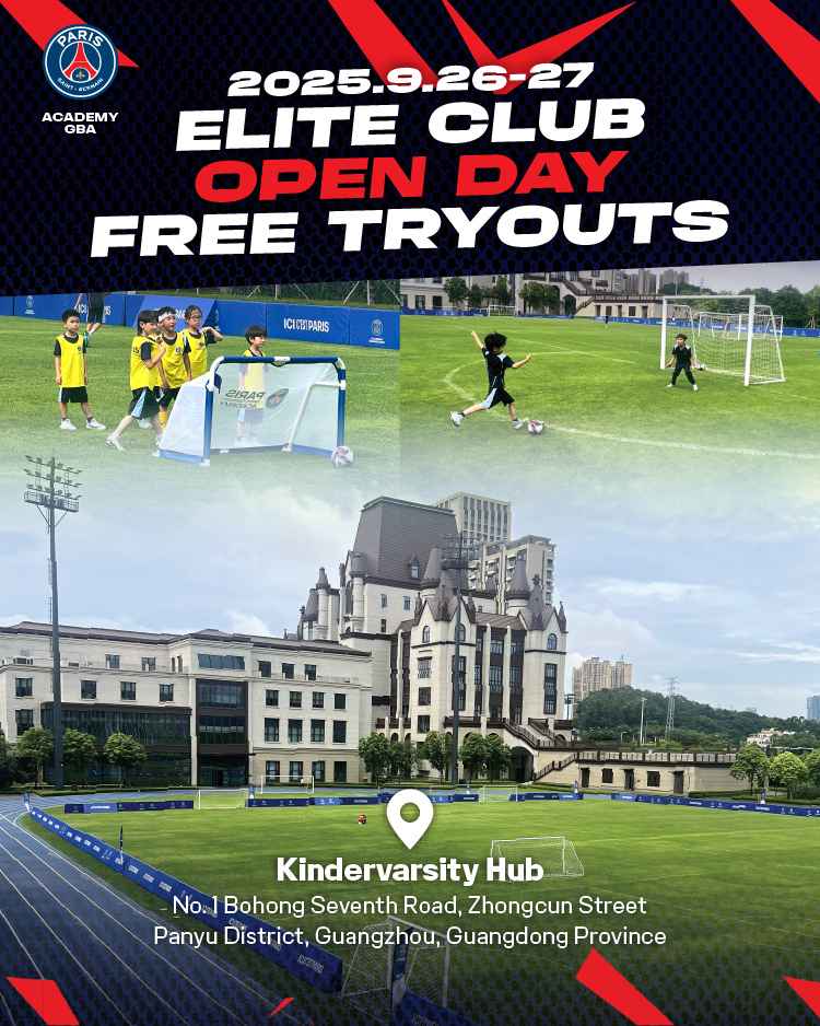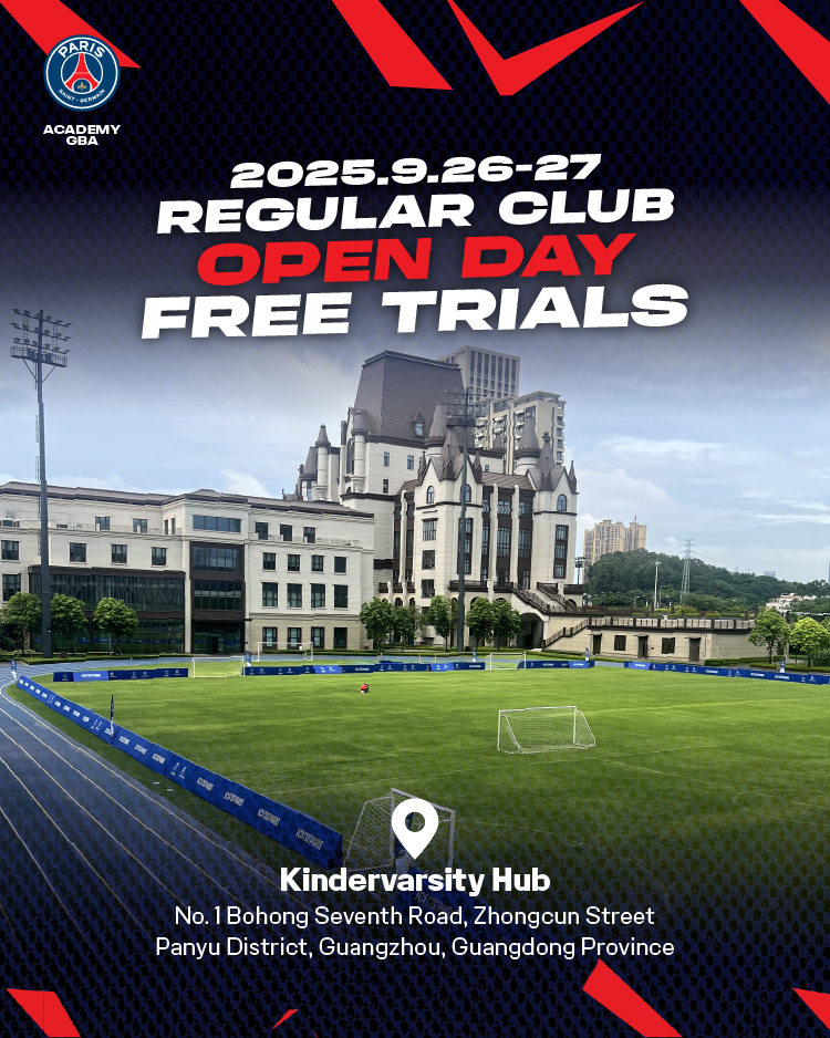 Join us on September 26 and 27, 2025 at Benenden Bilingual School Guangzhou for two days of football, fun, and opportunities. Whether you are looking to enjoy the game and build foundational skills in the Regular Program, or compete at the highest level through the Elite Program, these Open Days are your chance to experience PSG Academy training in action — for free.